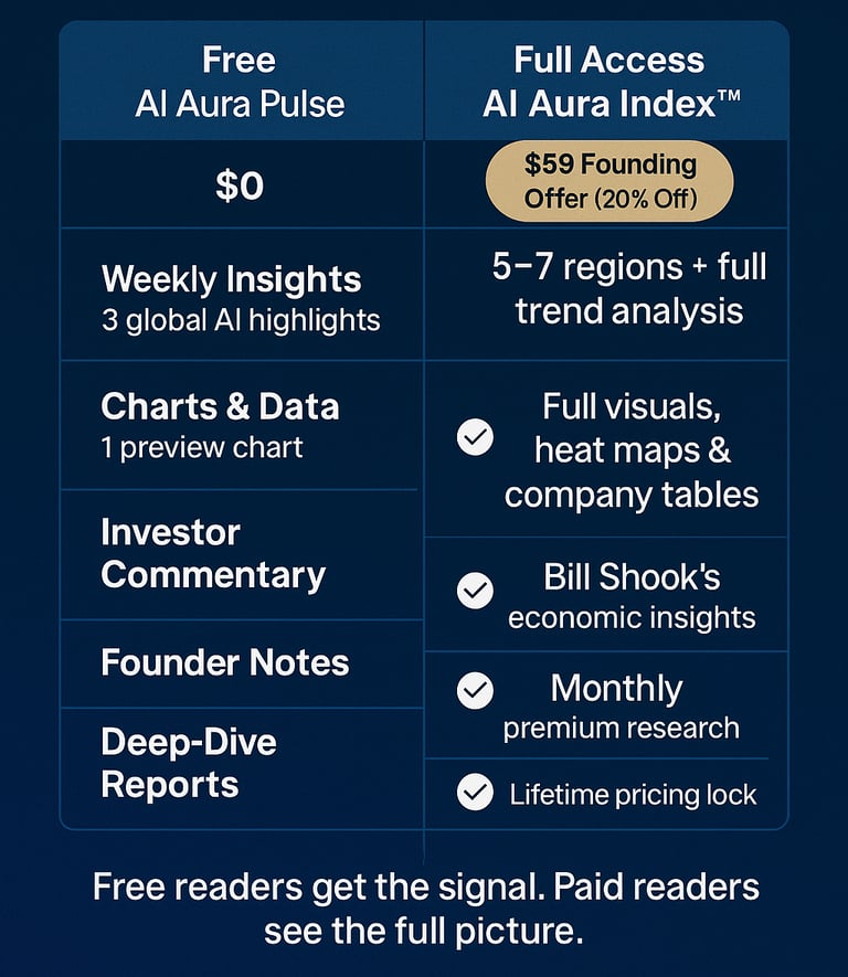 Join thousands of professionals receiving the AI Aura Index™ every Friday morning.